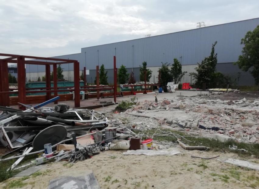 Am zweiten Tag steht nichts mehr von der ehemaligen Kantine bzw. früheren Umkleidekabinen. Ein ungewohnter Anblick der ein komisches Gefühl aufkommen lässt. Gleichzeitig ist die Hoffnung groß das hier bald ein neues Gebäude stehen soll welches für den Verein enorm wichtig wäre.
