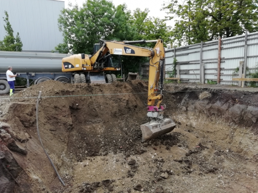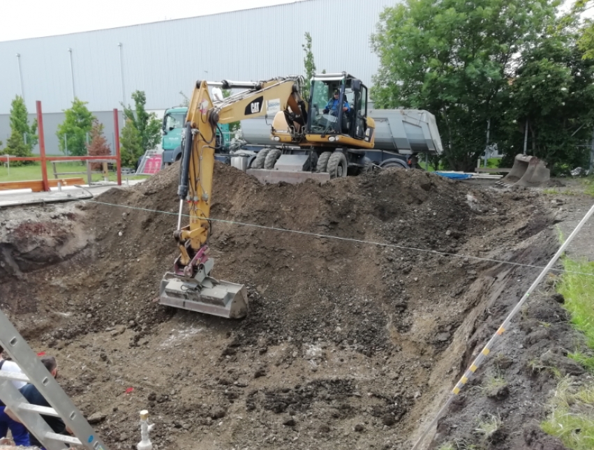 Nach mehr als zwei Wochen Pause wurden die Arbeiten seitens der MA51 wieder aufgenommen.Derzeit werden die Aushubarbeiten für die Zisterne gemacht. Diese Zisterne soll künftig den Brunnen mit Wasser versorgen, sodass immer Wasser zum Spritzen zu Verfügung steht.